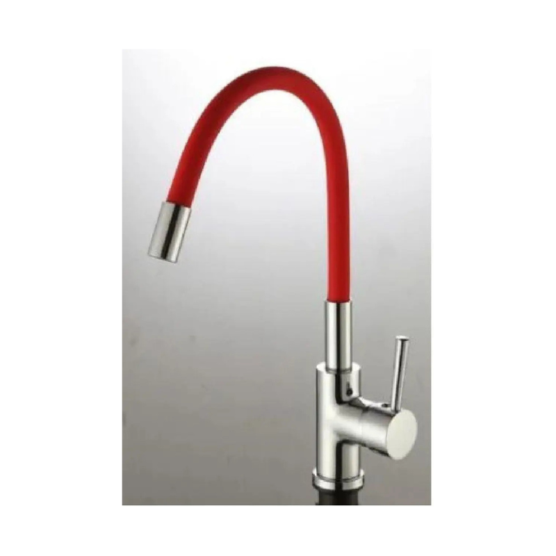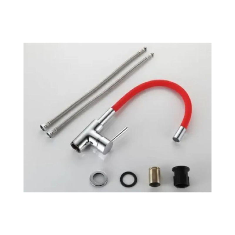 Torneira Cozinha Metal Cromada 38cm Monocomando c/ Cabo Flexível Vermelho